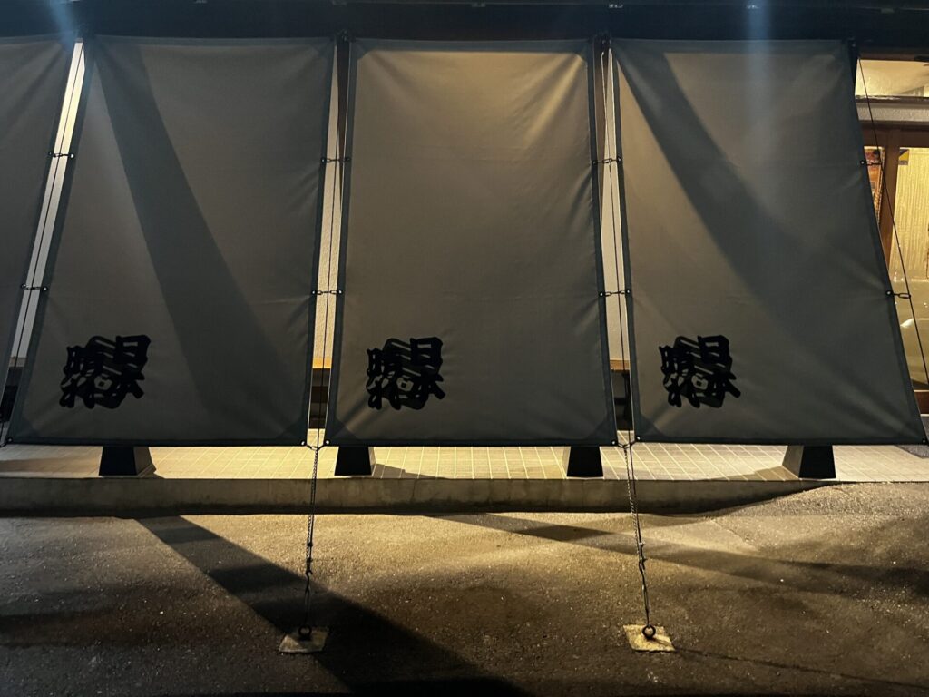 県道沿いの店舗です。店前の大きな暖簾が目を引きます。